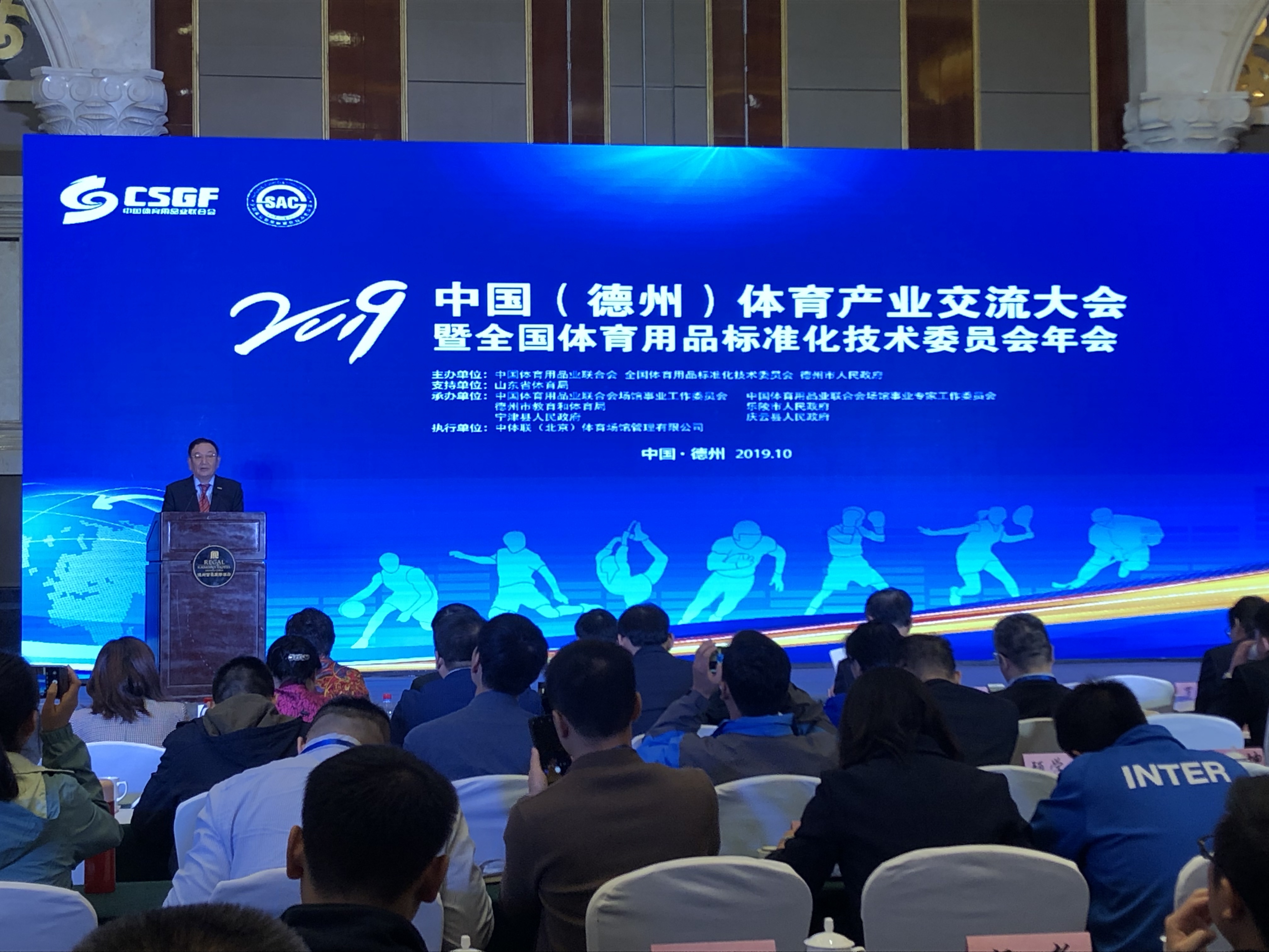 10月13日,2019中国(德州)体育产业交流大会在太阳能德州小镇开幕。大会由中国体育用品业联合会与德州市人民政府联合主办,山东省体育局支持,中国体育用品业联合会场馆事业工作委员会等单位共同承办。大会在 “融入京津冀助力新动能”的大背景下,以“德州智造·标准引领,助力体育产业升级”为主题,旨在充分展示区域体育产业发展成果,促进国际国内体育产业交流,扩大招商引资规模,搭建品牌商、渠道商和消费者展示与互动平台。开幕式上,bb贝博Ballbet产业集团荣获“明星企业”称号。