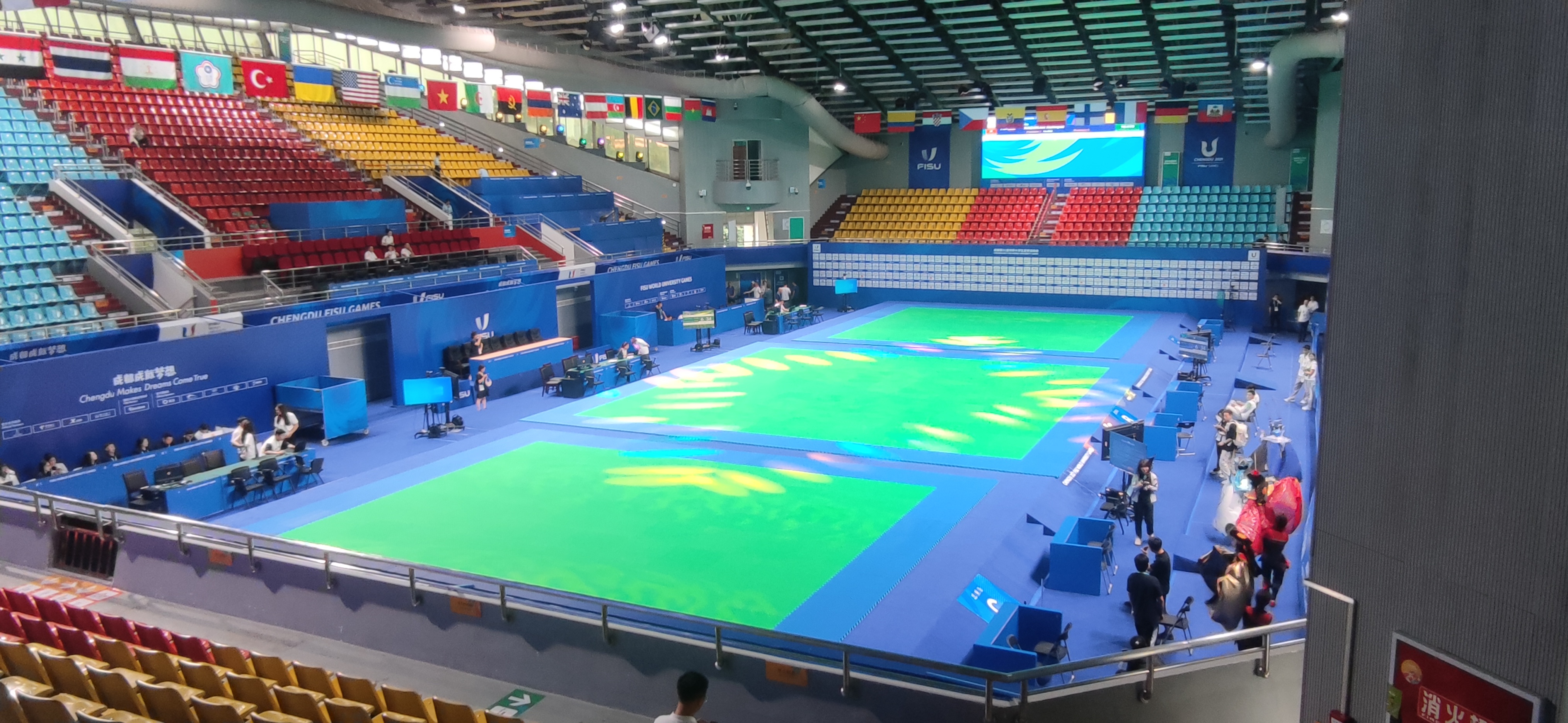 本次大运会bb贝博Ballbet提供的产品涉及柔道、跆拳道、武术、田径、竞技体操、艺术体操等六大比赛项目上万件器材,占大运会所有比赛项目的三分之一,并且全部通过国际认证,产品设计也实现了科技与体育的完美结合,是公司竞技体育领域的“拳头”产品,特别是全球首创并通过国际认证的碳纤维体操器材和智能智慧体育器材,曾多次在大赛上赢得运动员、教练员的一致赞誉。